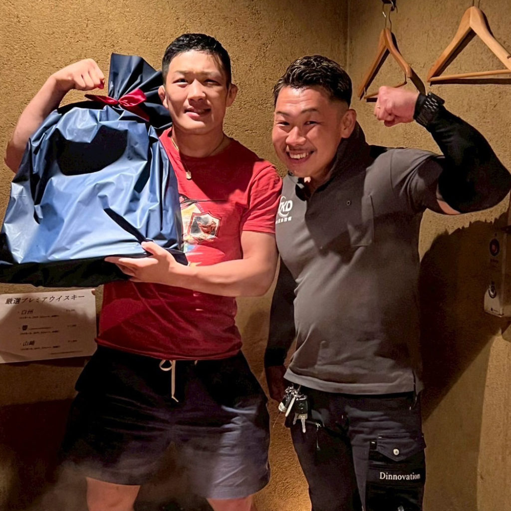 試合後には野村選手と祝勝会を行い、栄光の瞬間を共に喜び合うことができました。